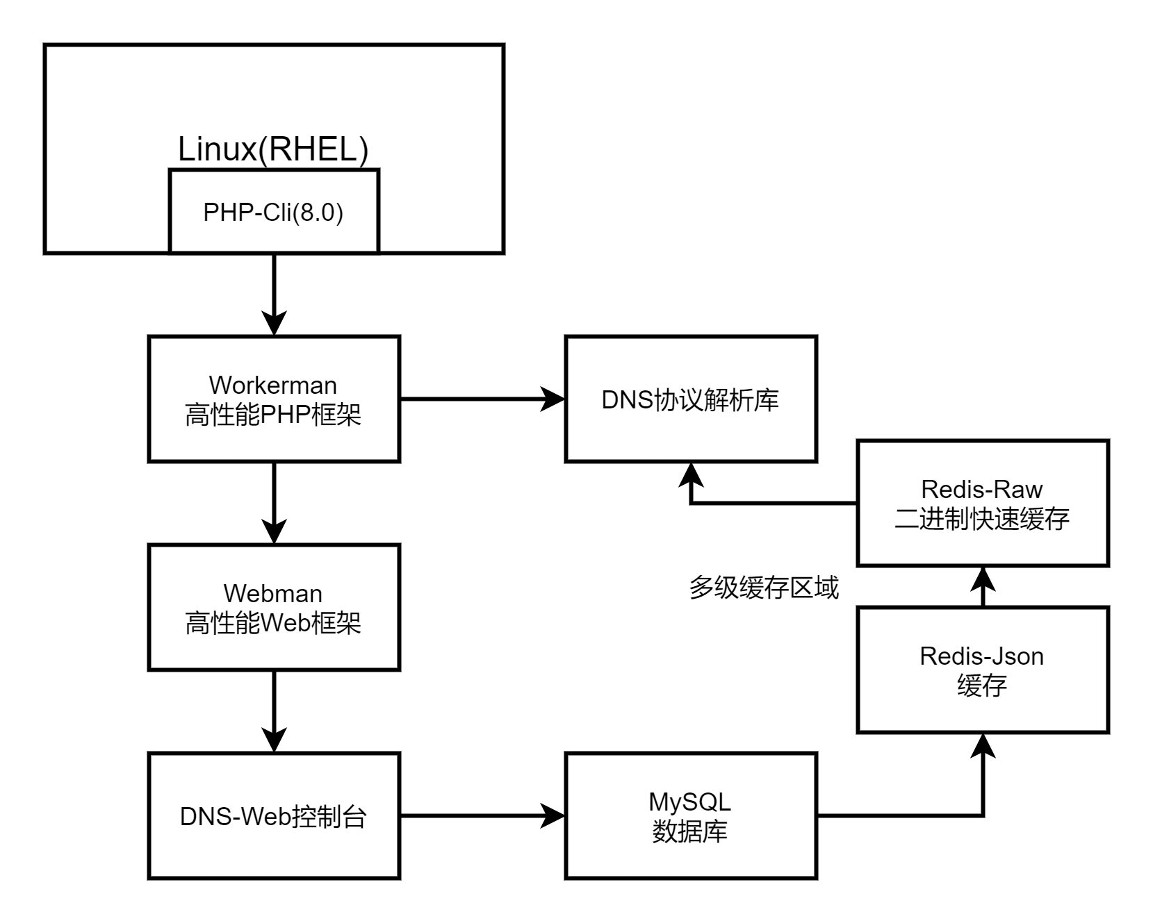 我们瞄准行业痒点,使用先进的PHPWebman高性能框架,解析并实现了DNS协议